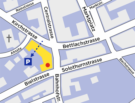 Das Möbel-Märit Ladenlokal im ersten Stock des Postmarkt-Gebäudes an der Kirchstrasse 1 in Grenchen.